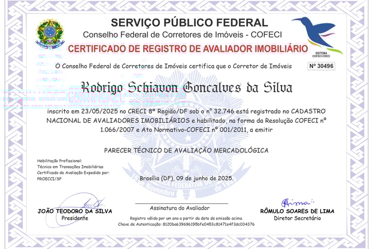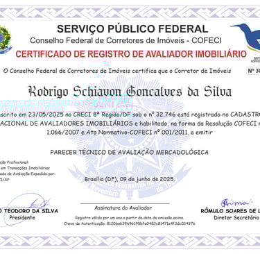 O Avaliador de imóveis Rodrigo Schiavon oferece Pareceres Técnicos de Avaliação Imobiliária (PTAM) para residências e comércios, com precisão, confiabilidade e aderência às normas da ABNT (NBR 14.653). Com atuação desde 2020, e mais de 50 avaliações realizadas, possui vasto conhecimento do mercado imobiliário e utiliza metodologias atualizadas.